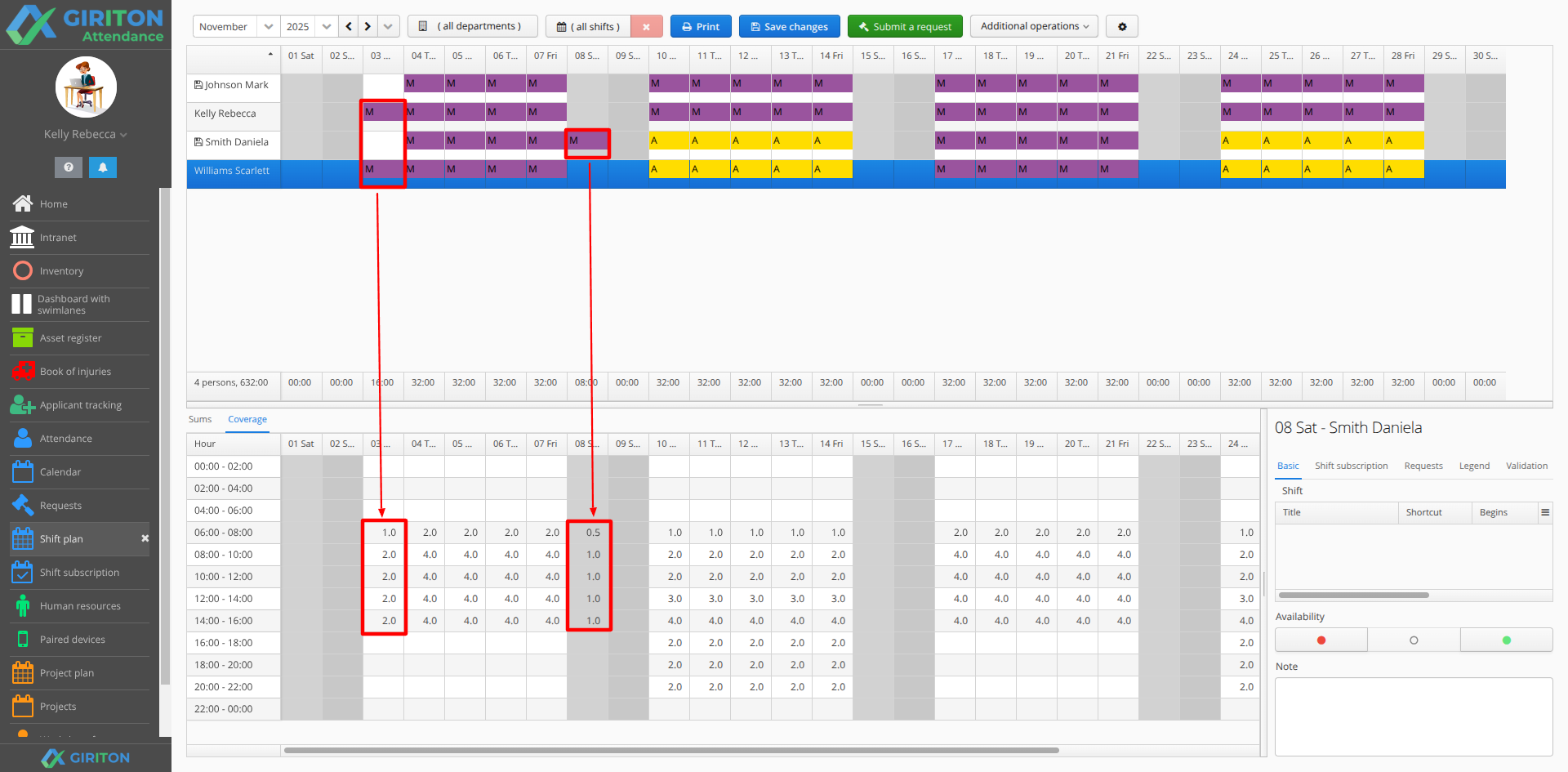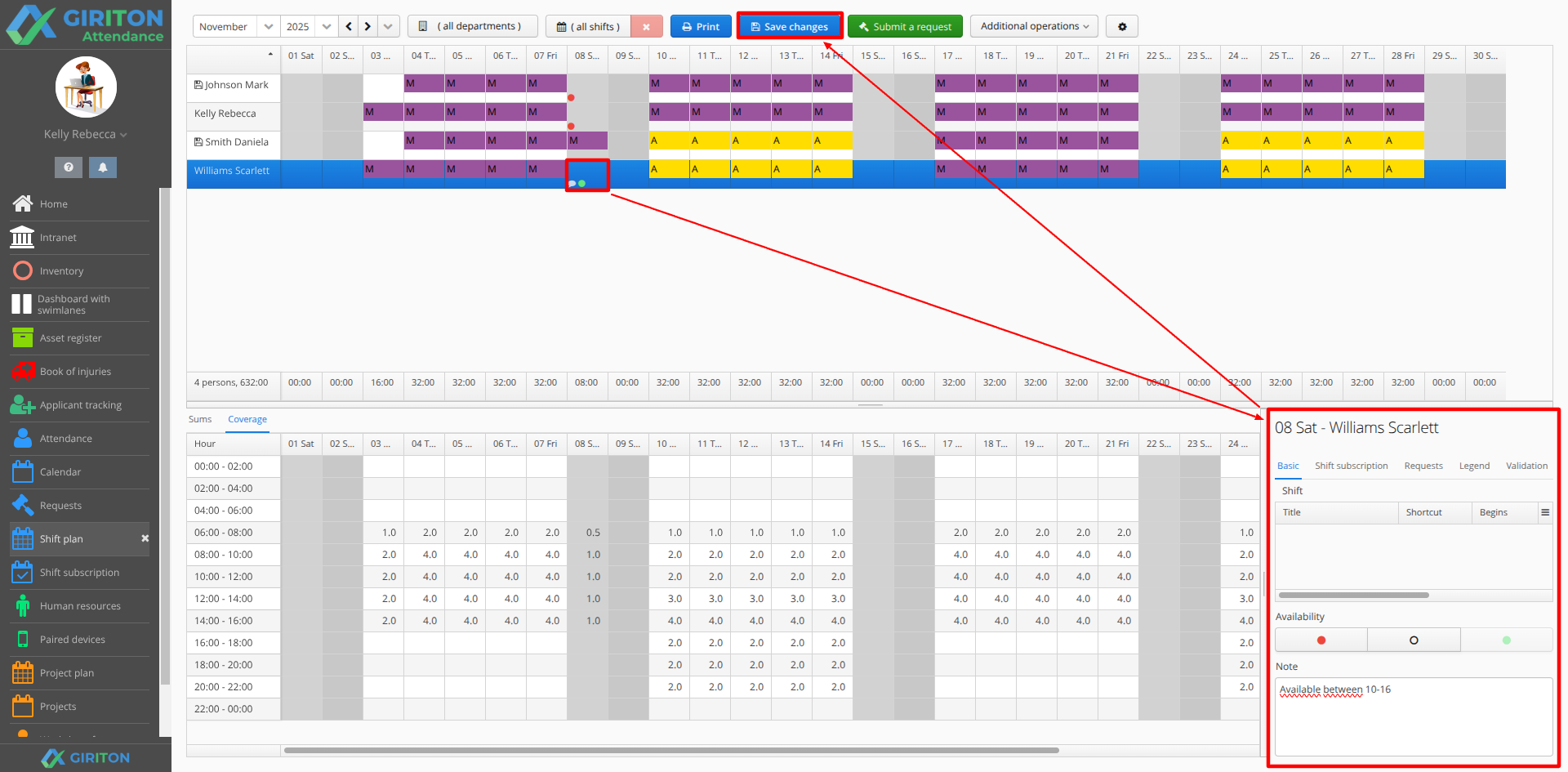 In the Shift Plan, you can specify your availability on specific days in advance or add comments to shifts. This feature is often used by part-time workers, for example.