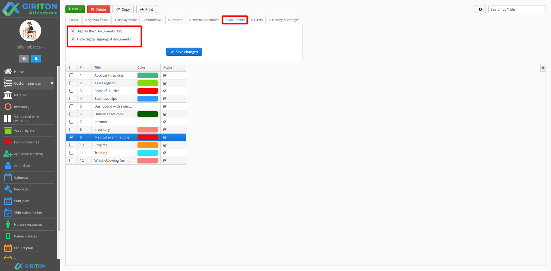 For each agenda, you can activate the "Show Documents tab" and "Enable digital signing of documents" functions in the Documents tab. In this case, you can attach documents (PDF, Word, Images, ...) to the records of the agenda (for example, the Accident Book) or digitally sign these documents.